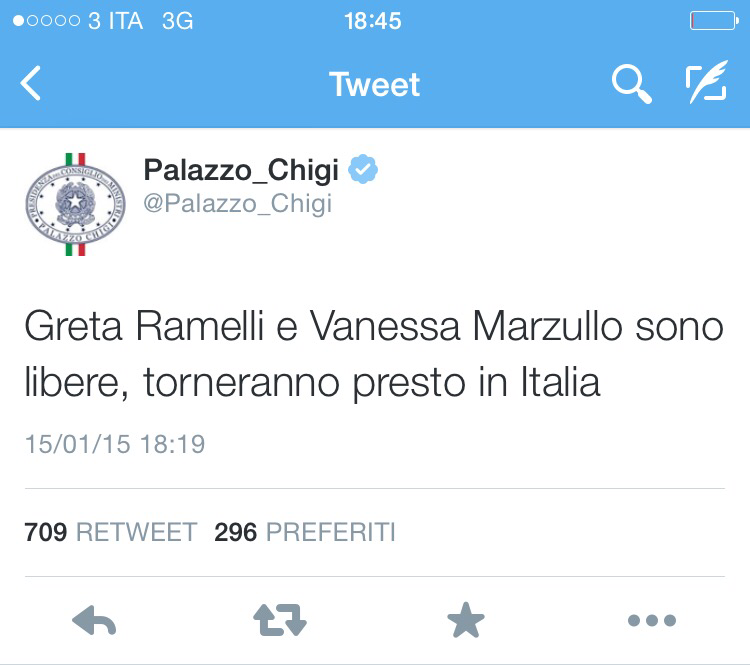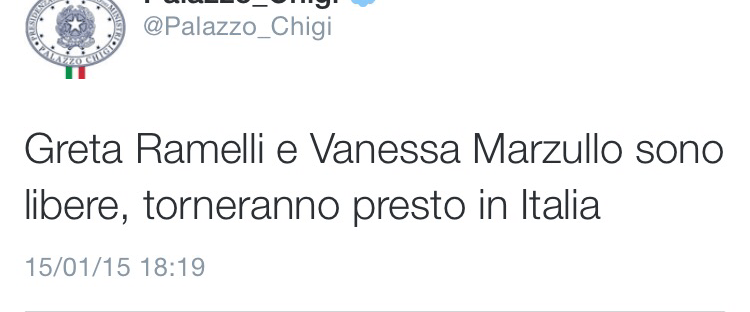 Libere Greta e Vanessa, le due cooperanti italiane rapite in Siria 16 gennaio 2015 Condividi: Condividi su X (Si apre in una nuova finestra) X Condividi su Facebook (Si apre in una nuova finestra) Facebook Mi piace Caricamento... Correlati